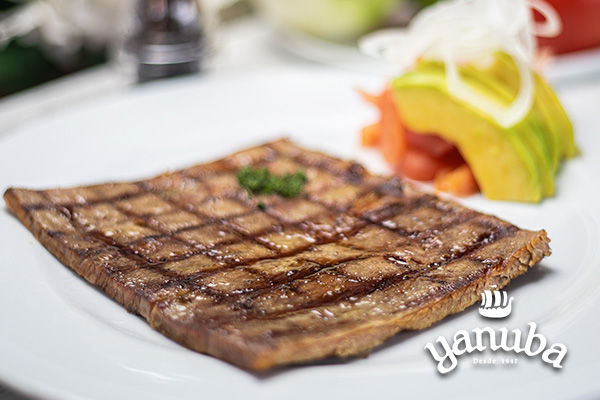 250 gramos. Preparación típica colombiana acompañada de papa chorreada y ensalada de aguacate.